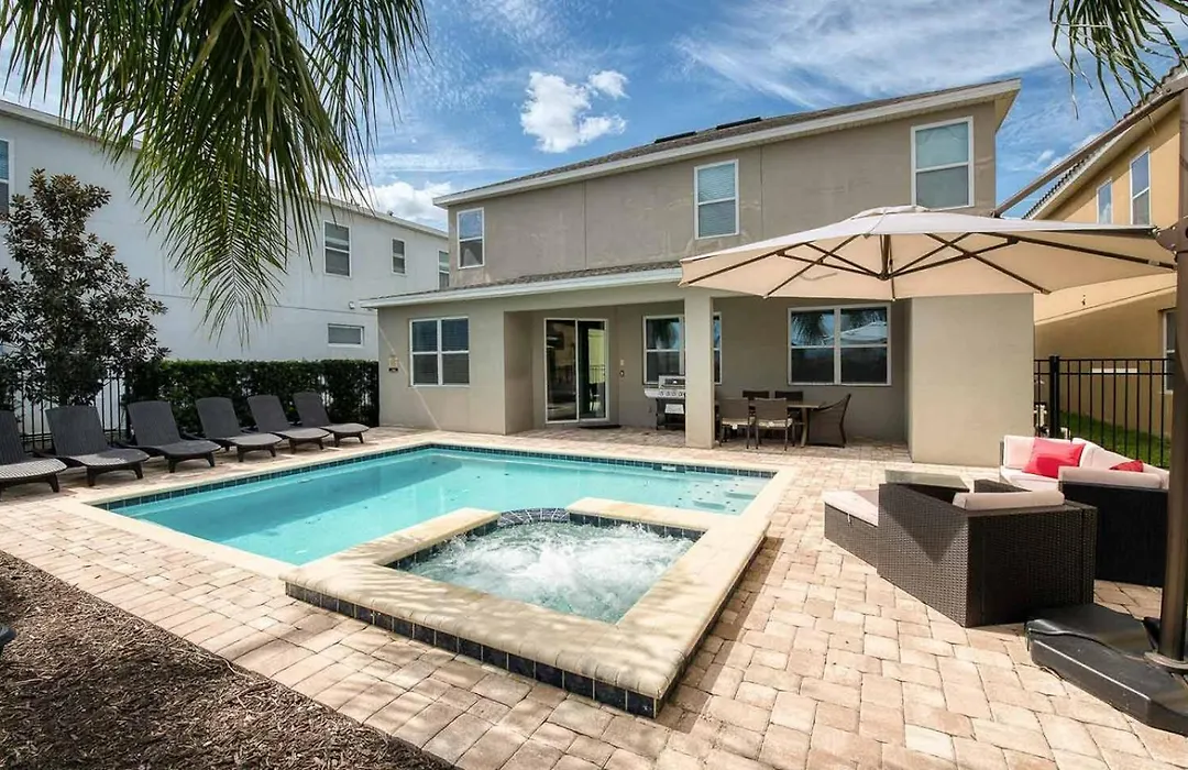 6Br Home W Theater Pool Near Disney includes a bathroom with a separate toilet, a shower, and a washing machine. Hair dryers and bath sheets are included to enhance your comfort.